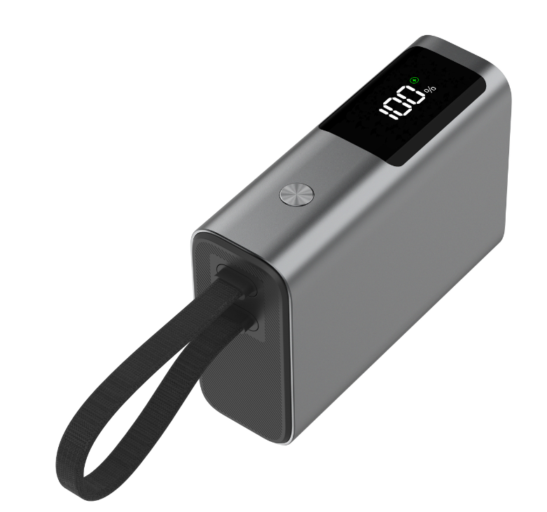 10000mAh PD100W Aluminum power bank with TFT screen feature and integrated cable