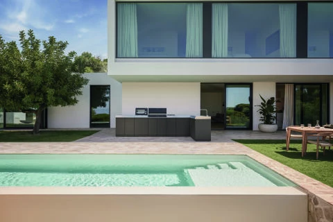 Das gesamte Sortiment besteht aus hochwertigen und outdoorfähigen Materialien, die Sonne oder Regen 365 Tage im Jahr standhalten. Essenzieller Teil des Designs ist Modularität. Ob kleiner Balkon oder große Terrasse: Verschiedene Module, darunter mehrere Gasgrills und Mieles erster Outdoor-Kühlschrank, lassen sich flexibel miteinander kombinieren – für jeden individuellen Outdoor-Küchen-Traum. Über 60 Zubehöre bringen neben weiteren Zubereitungsarten auch mehr Flexibilität und Komfort nach draußen – wie zum Beispiel Haken und Halterungen für Modulschränke, die die Grillzange, den Spachtel oder die passgenaue Abdeckhaube immer griffbereit halten. So fügt sich die Outdoor-Küche dank ihres minimalistischen Designs als Highlight in jeden Outdoor-Bereich ein.