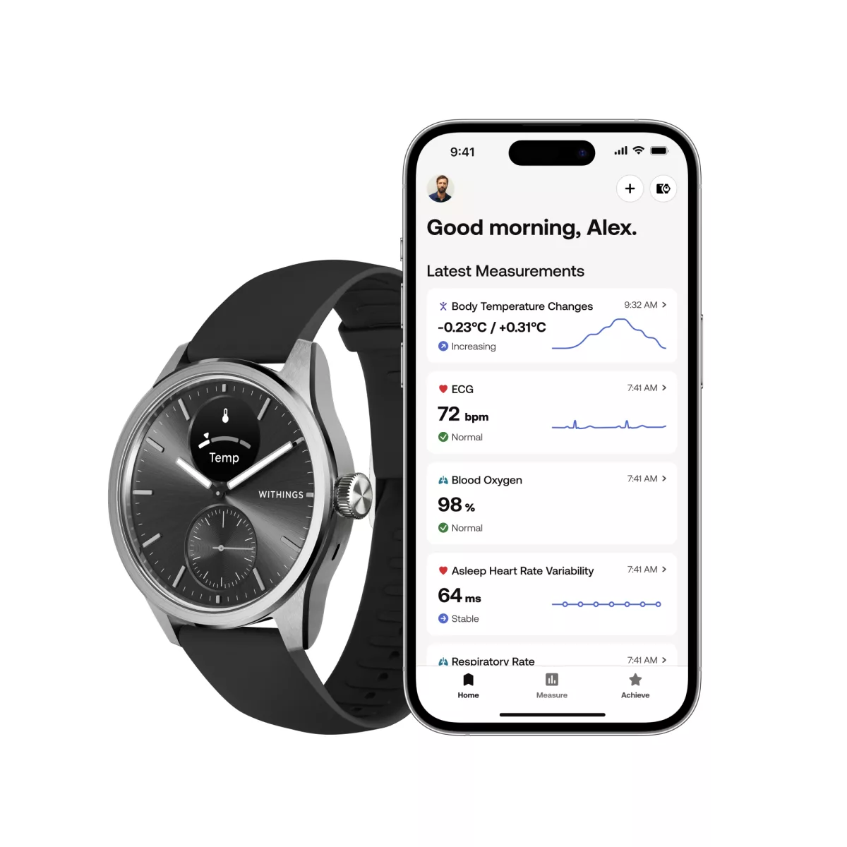 In 2009, Withings created the world's first connected scale. Its watches, scales, sleep analyzers, and blood pressure monitors are clinically validated and entirely designed in France, in partnership with renowned research institutes. Withings enables more than fifteen million people to track and improve all aspects of their health every day, from home: muscle, fat, metabolism, sleep, stress, heart health, and nervous system. The medical-grade measurements are combined with personalized advice in the app.