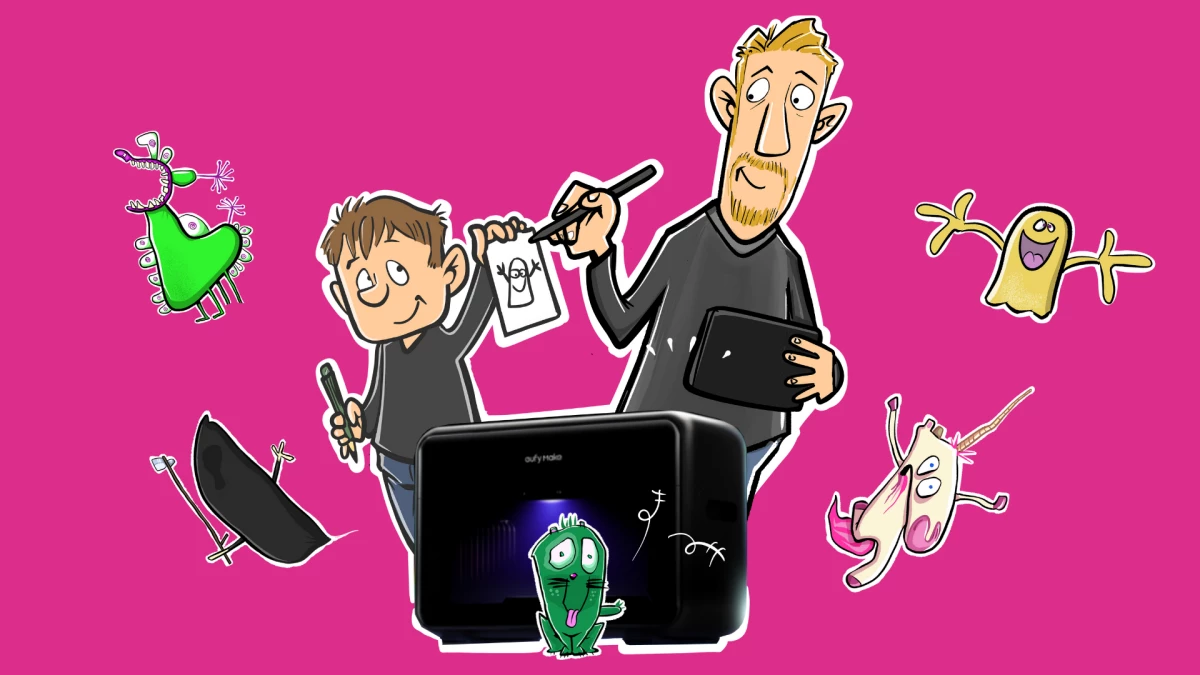 Pop star Michael Schulte shares a father-son art story before leading a cartoon workshop with Berlin school kids – creativity made tangible with eufyMake tools. (Invite only)